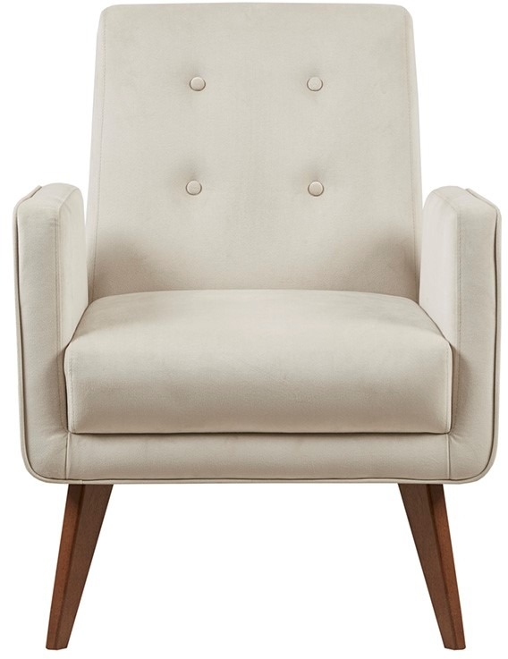 Complete your living room with the mid-century charm of the INK+IVY Lacey Accent Chair. This upholstered accent chair features a button-tufted back and welt detailing on the arms that add sophisticated touches to the design. The solid wood legs flaunt a rich walnut finish to contrast the upholstery and complete the mid-century look. Leg assembly is required.Read More