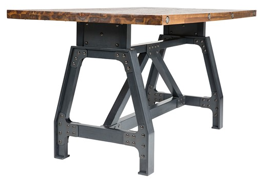 Lancaster dining table recalls another era with bases inspired by cast iron machinery and heavy timber flooring found in turn of the century factories. Solid acacia create a substantial wood frame, as hand painted graphite metal finished wood legs and rivet details become finishing touches for a modern industrial update. Adding a gathering connector (included in the package) can adjust table height from 30” dining to 36” gathering. Table will be shipped in 2 cartons.Read More