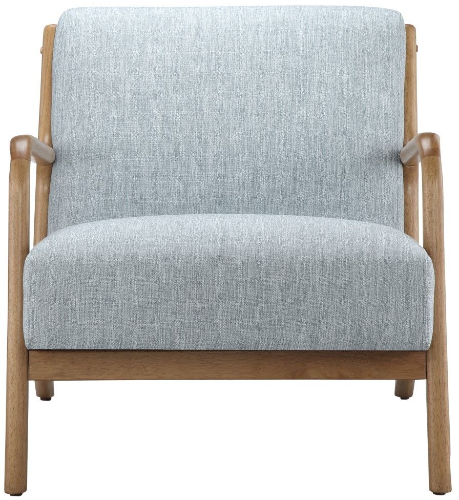 Sit back and relax in the comfort and mid-century style of the INK+IVY Novak Lounge Chair. This lounge chair features a soft upholstered seat and back in a stunning light blue color. The upholstery is beautifully complemented by elm wood finish on the solid wood frame and round arms, for a chic mid-century look. With its clean and simple design, this mid-century style lounge chair adds a one-of-a-kind sophisticated accent your living room. Assembly is required.