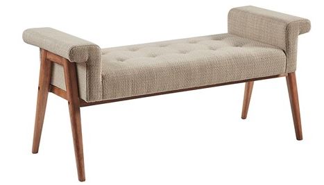 Elevate your living room or bedroom with the INK+IVY Mason Accent Bench. This accent bench features a button tufted seat and key arms that are upholstered in a soft tan fabric, for a sophisticated charm. The brown wood finish on the solid wood legs complements the upholstery to create a chic transitional look. Leg assembly required, tools included.Read More