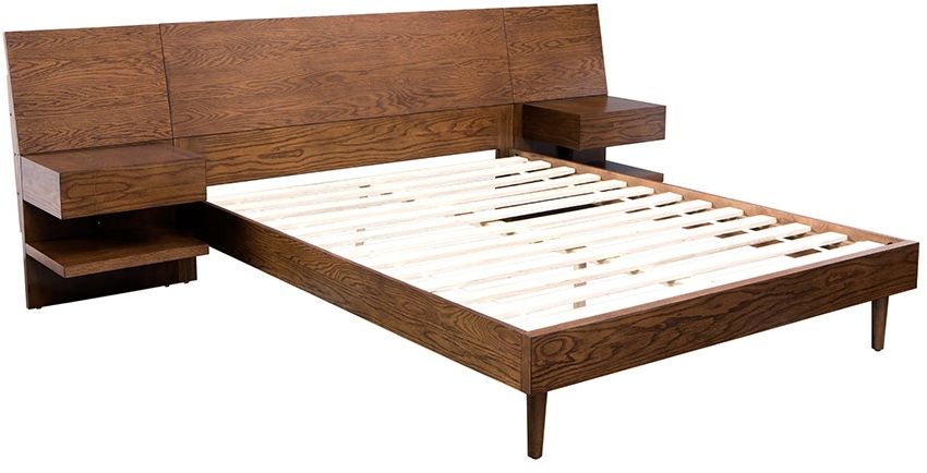 Form follows function in our sleek Clark bedroom set that comes complete with 2 attached nightstands. Cantilevered nightstand boxes slide forward to reveal hidden storage. Our low headboard creates a perfect gallery to display your favorite wall décor. Bed will be shipped in 4 cartons. Assembly required.