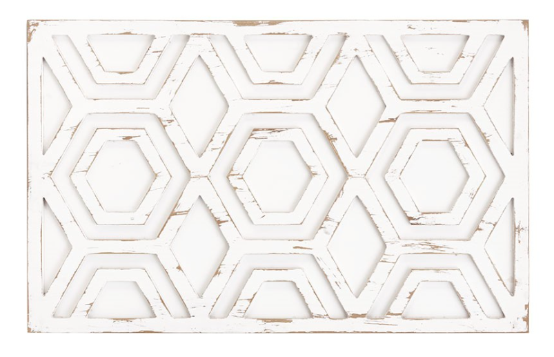 The INK+IVY Ralston Wooden Wall Art provides a charming and warm accent to your home décor. This white wooden wall art piece features a hexagonal design in distressed beige wood finish, creating a rustic look. Neither water sealed nor water safe the wall art piece is meant for indoor use only. Easy to hang with hook mounts on the back, this wooden wall art adds a natural touch to your living room or bedroom. No assembly required. Mounting hardware not included.Read More