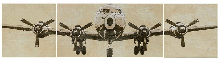 Create a soaring display with Flight Time 3 Piece Canvas Set. A large airplane spreads across three canvases in light and dark natural colors for a striking appearance. The gel coat gives these canvas art works a glossy finish that adds dimension to each piece.Read More