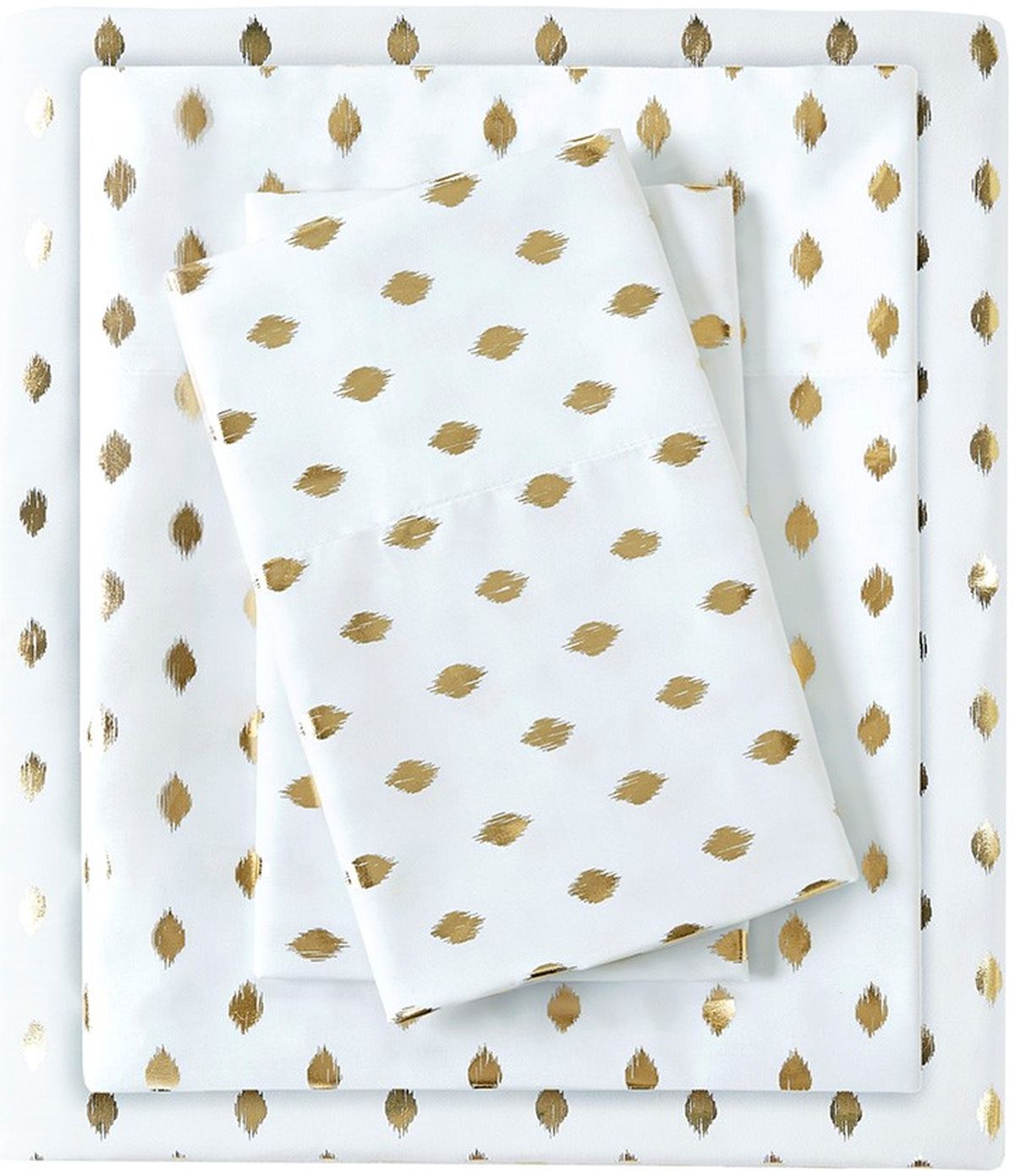 Add a touch of glam to your bedroom with the Intelligent Design Metallic Dot Printed Sheet Set. A metallic Ikat-style dot print is brilliantly displayed on the soft-hued fabric for a stunning modern look. Made from ultra-soft microfiber, this printed sheet set provides exceptional comfort and a contemporary style to update your bedroom décor. The fitted sheet fits mattresses up to 16 inches.