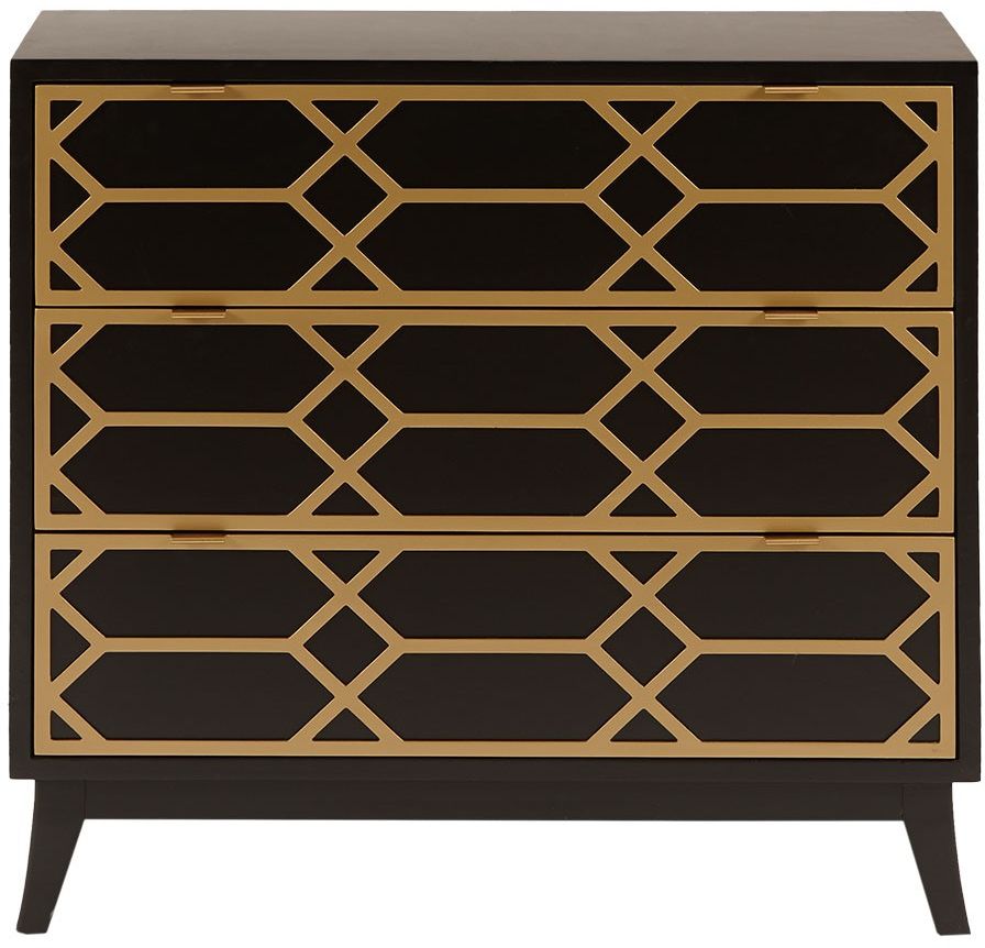 Update your home decor with the eclectic style of the Madison Park Maria Accent Chest. A gold lattice work adorns the front of the chest, providing extra dimension and an elegant contrast. The 3 large drawers create a generous storage space for your belongings. Unique in design, this accent chest adds luxurious style and functionality to home decor. No assembly required.