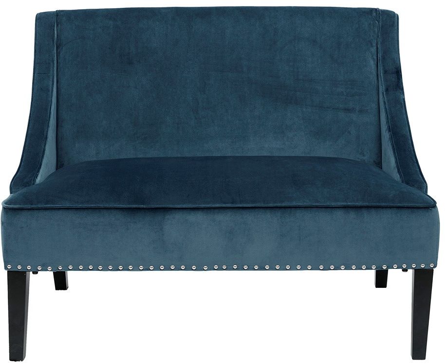 Make a statement with the Madison Park Avalon Swoop Arm Settee. With beautifully tapered birch legs in warm Moroccan finish and a selected hardwood frame, this upholstered loveseat adds an elegant flair to your home décor. The high-density foam filling delivers superior and long-lasting comfort, while the rich upholstery creates soft velvet touch. A silver nail head trim wraps around the base of the seat, for an alluring finishing touch. Clean lines and subtle curves allow this settee sofa to complement your living room. Leg assembly is required.