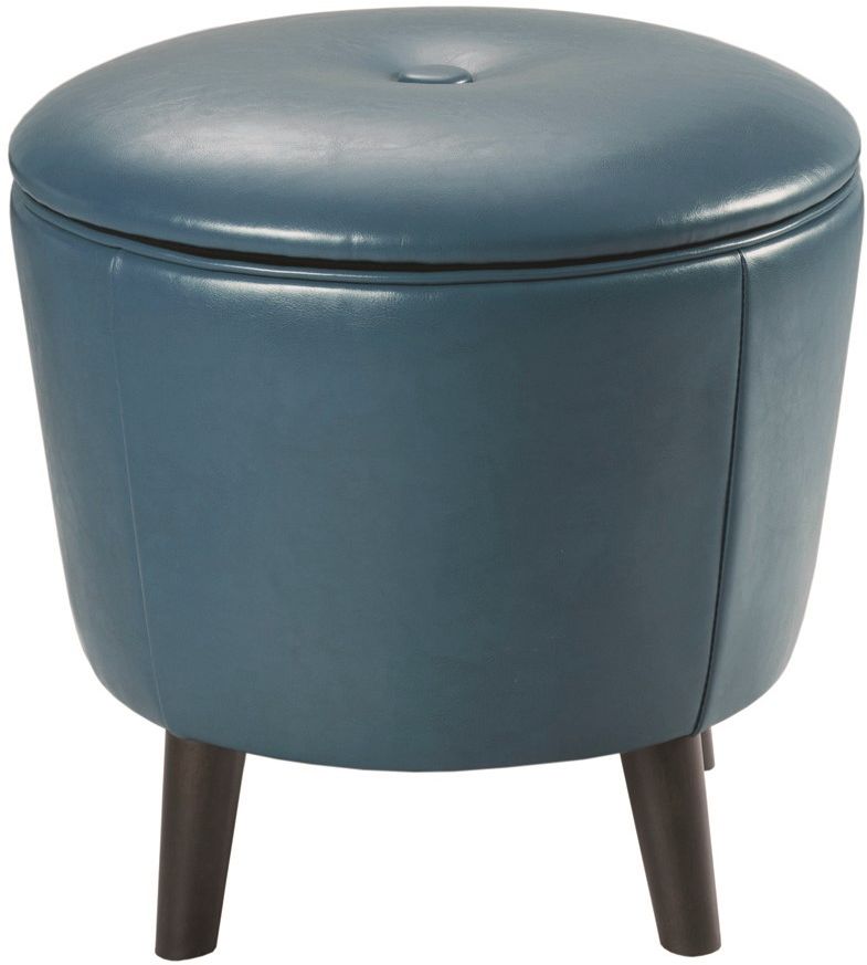 Olliix by Madison Park Blue Crosby Storage Ottoman is this mid-century, button tufted round ottoman that offers storage possibilities along with its sleek look.Read More