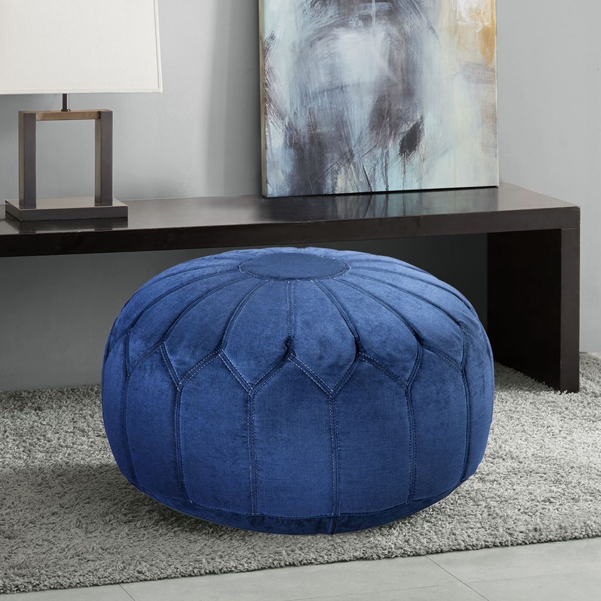This versatile oversized ottoman pouf will make a statement in any home with its distinctive stitching pattern and soft appearance. No assembly required