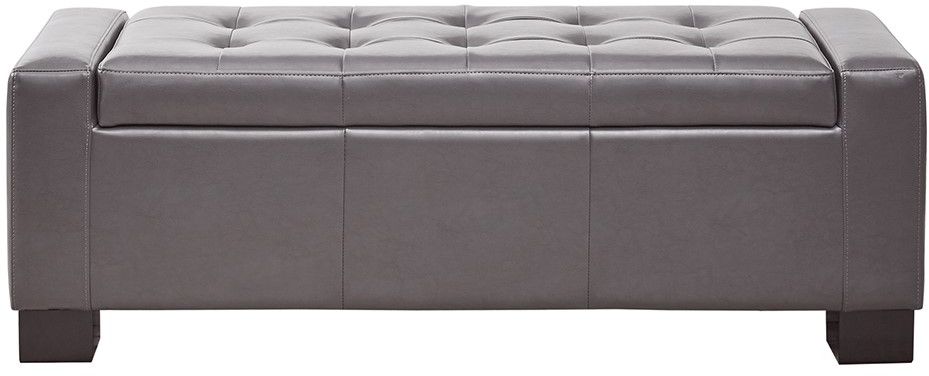 This bench with its handsome button tufted design complete with lift top, storage and faux leather look makes it a classy accent for any space.