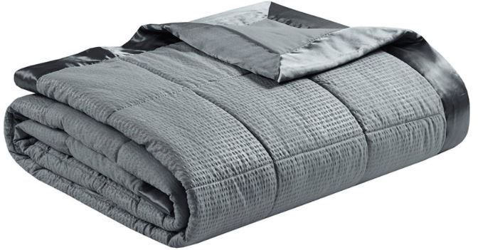 The Madison Park Cambria Premium Oversized Hypoallergenic Down Alternative Blanket easily provides added warmth to your bed. This oversized blanket features an embossed texture with a 3-inch satin binding, for a comfy casual look. The classic box quilting design keeps the hypoallergenic filling secure and evenly spaced to keep you warm and comfortable. A 3M Scotchgard treatment on the down alternative blanket helps release stains to make cleaning easier while prolonging the life of the fabric. This hypoallergenic blanket is also Oeko-Tex certified, meaning it does not contain any harmful substances or chemicals, ensuring quality comfort and wellness.Read More