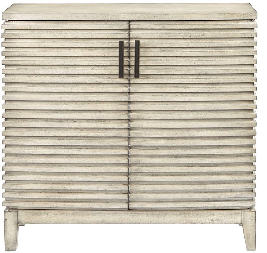 Rustic sophistication describes this linear design in distressed cream. Featuring two doors that open up to a spacious shelf, this Chest fits a style to home decor. No assembly required.
