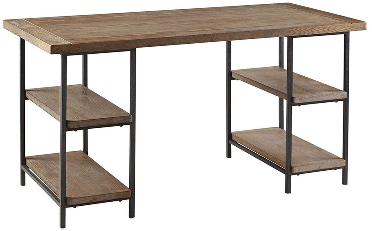 Incorporate an industrial vibe to your home with this metal frame accent desk. Designed with hardwood and metal, this sturdy desk offers side shelving for extra storage and a large work space so you can spread out your work and still have room for a computer or lamp. Assembly required.