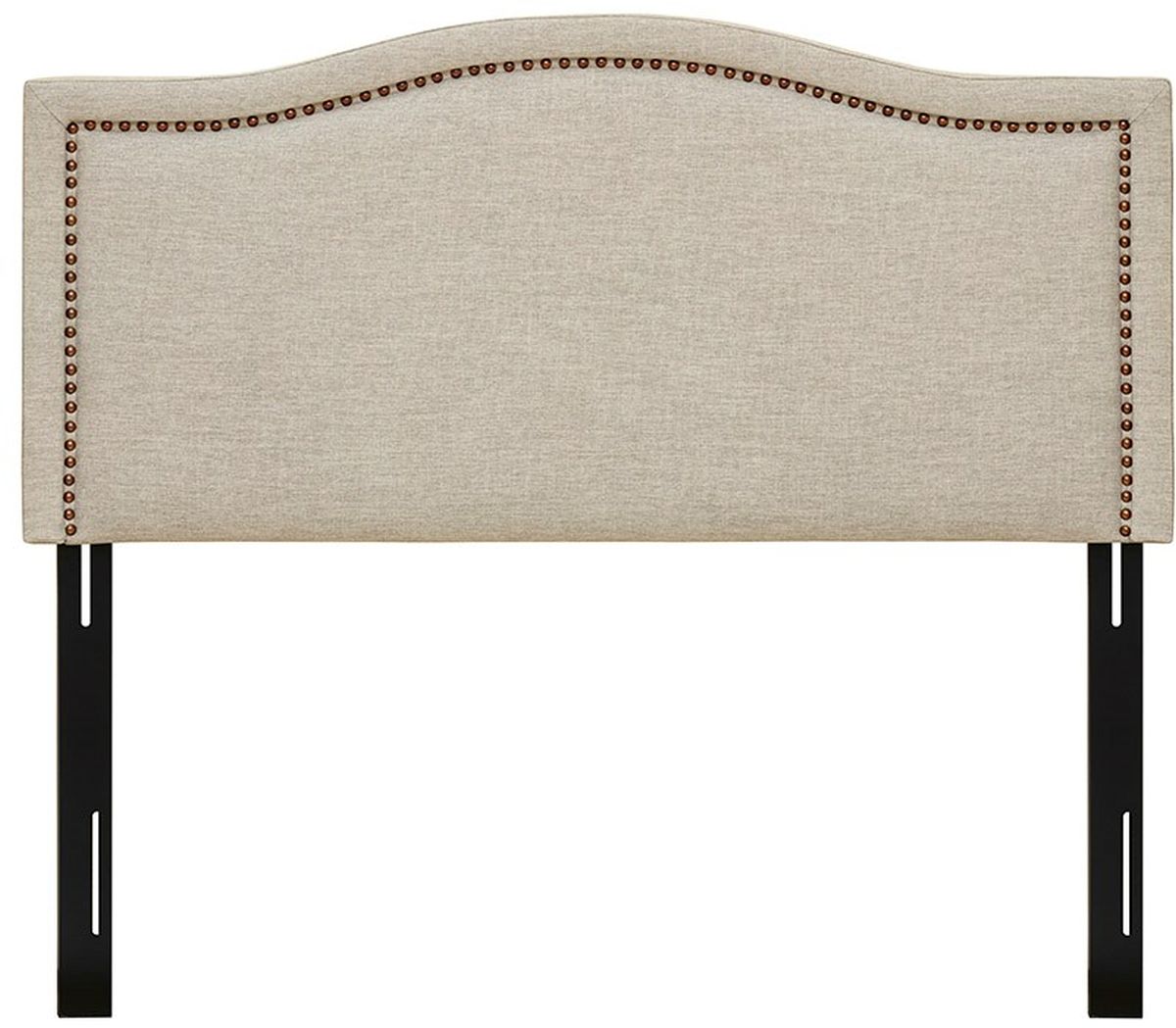 Update your bedroom with the refined style of the Madison Park Nadine Upholstery Headboard. Simple and elegant, this queen headboard is upholstered in a natural hue fabric with silver nailhead accents to create a chic transitional design. A metal frame with adjustable height provides sturdy support and attaches to your bedframe. Showcasing elegant and clean lines, this queen headboard offers a stylish versatility to match any bedroom decor. Assembly required.