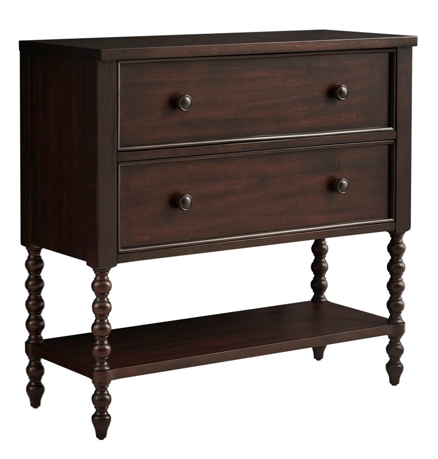 Complement your living space with the Madison Park Signature Beckett Accent Chest. This accent chest features a dark morocco finish to create a warm and inviting look. A double drawer and lower shelf provide plenty of space for your bedside essentials. The turned solid wood legs add an elegant accent, completing the farmhouse design. Simple assembly required.Read More