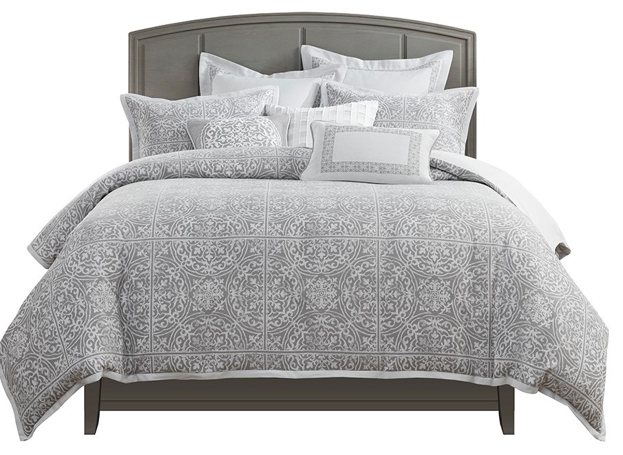 Transform your bedroom with the elegance of the Madison Park Signature Windham 8 Piece Jacquard Comforter Set. This grey and white oversized comforter and 2 matching shams feature a tile jacquard pattern to create a luxurious transitional look.Read More