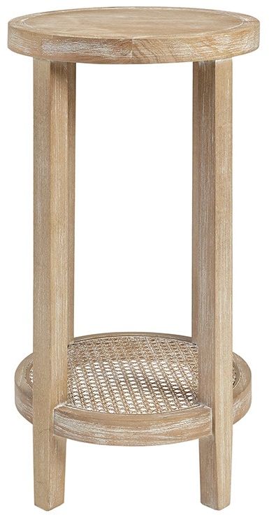 Created exclusively for the Martha Stewart Bedford furniture collection that embodies country farmhouse living, the Harley Accent Table provides a simple and charming addition to your home décor. This round accent table features Ash veneer tabletop and lower rattan cane shelf creating a unique design. The diameter of this table is 15 inches and the height is 28 inches.Read More