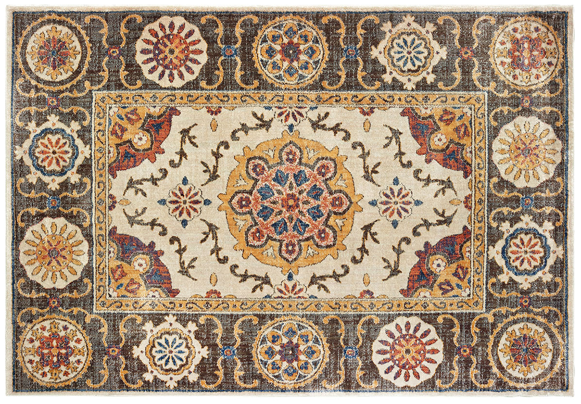 Distressed traditional and global inspired patterns make up the Pandora collection. Machine-woven of space-dyed polypropylene, Pandora blends luxurious comfort with a super soft hand. Bright accents of blue and berry tones mixed with pops of gold and orange give fresh life to traditional classics.