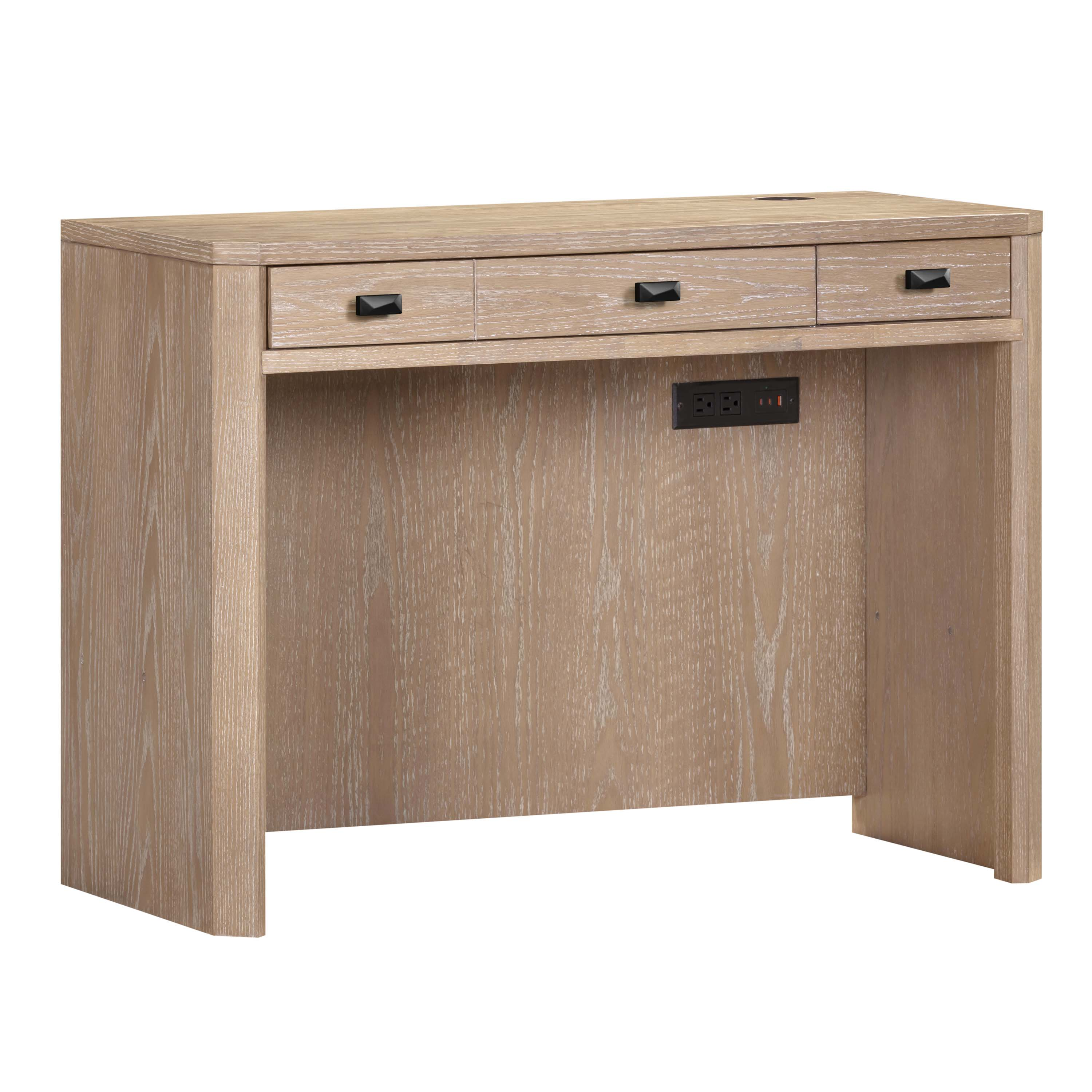The 40" library desk is constructed from hardwood solids and veneers with decorative metal hardware and peppercorn matte finish. Included is a power station under the top and a drop down laptop faux drawer with a small drawer on the right.Read More