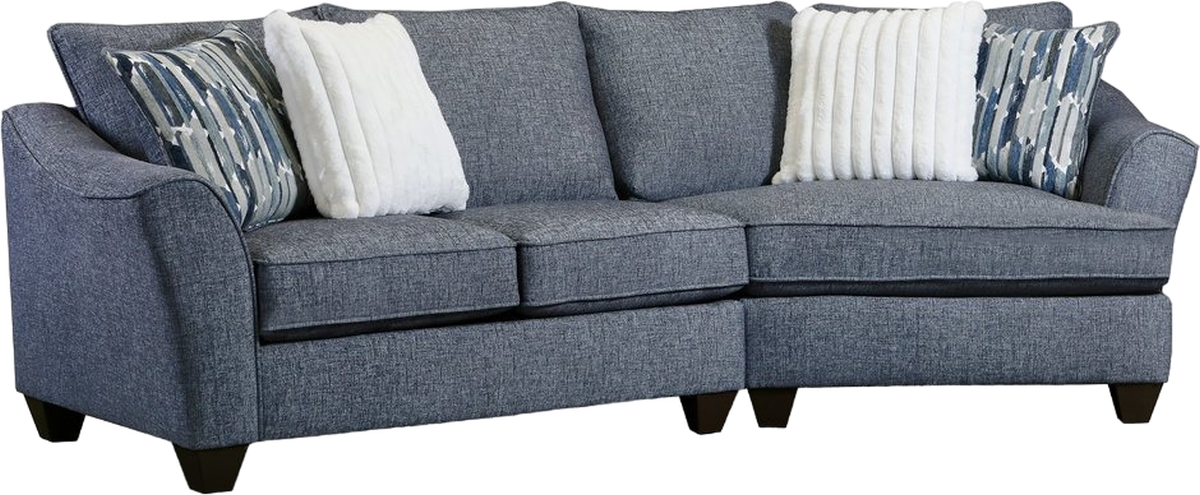 The addition of a cuddler piece creates an oasis of coziness, perfect for curling up with a good book or a loved one. With a navy body fabric and cushion welting, this sofa exudes elegance in equal measure. Elevate your living room with this exceptional cuddler sofa, where modern design meets timeless comfort, promising cherished moments of relaxation and style.