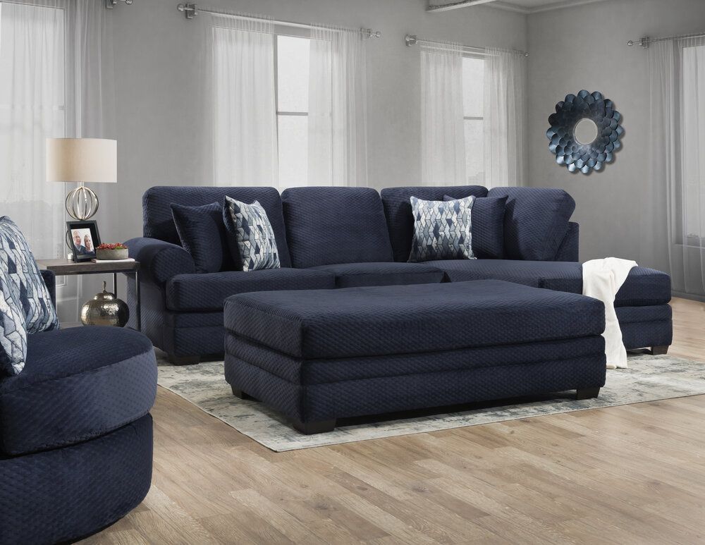 Peak Living Comet Eclipse Sectional features warm blue fabric, block feet, and four toss pillows in impression sapphire fabric. The sectional is a beautiful addition to any living room and will suit any style.Read More
