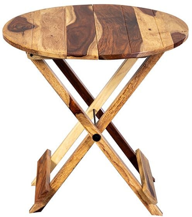 Made from solid sheesham wood, this collapsible round accent table is great for impromptu entertaining. Easy to use and easy to store. Made with elegant sheesham planks and handmade by artisans.