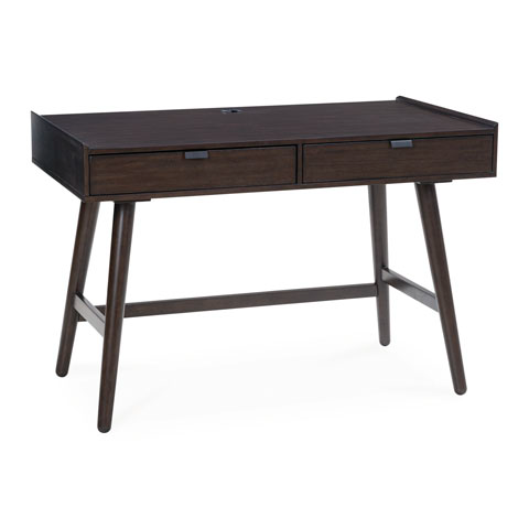 Casual Contemporary design. Made with Rubberwood solids, Mango wood veneer and MDF substrates. Finished in a rich merlot color for a metropolitan feel. Desk drawers feature French/English dovetail construction, fully finished interiors and heavy duty ball-bearing side glides for durability and smooth function. Desk includes a cord hole in the top to keep wires and power supplies tucked neatly out of sight.Read More