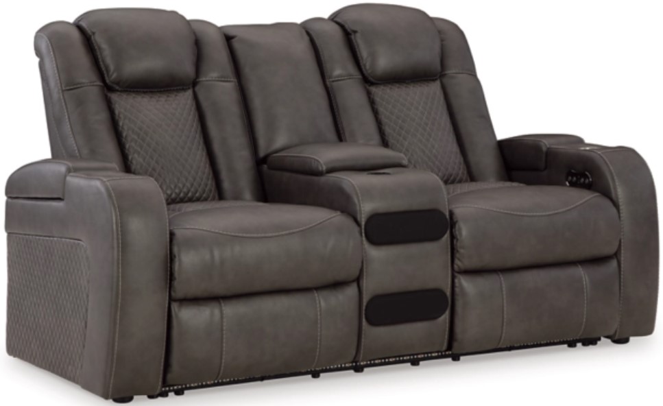 Signature Design by Ashley® Fyne-Dyme Shadow Power Reclining Loveseat with Console