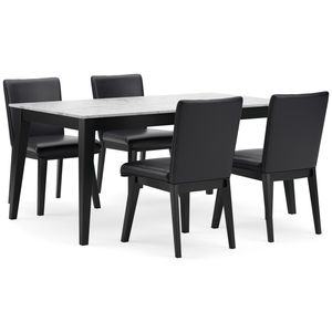 This dining set exudes modern sophistication. Finished in a sleek black wood tone, it's adorned with a stunning white faux marble tabletop. The piece serves a simply striking feast for the eyes—now your only worry is what to serve for dinner.Read More