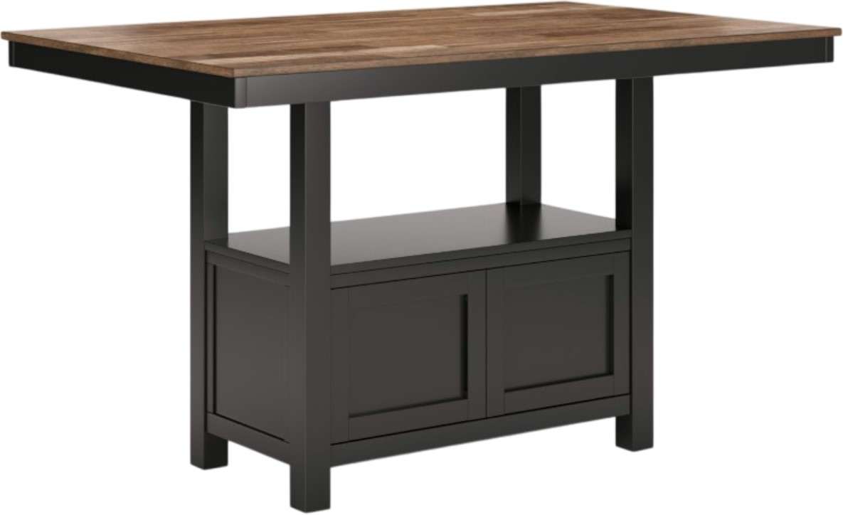 This counter height dining table dresses up your favorite farmhouse motifs with modern flair. A butcherblock-style top provides ruggedly chic contrast to the sleek black base. Short on storage space? The pedestal’s built-in cabinet, with doors on each side for easy access, keeps essentials within reach.Read More
