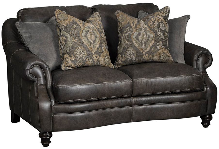 Traditionally styled loveseat with 4 pillows featuring roll arms that blend into the exposed back rail to silhouette the seating area.Read More