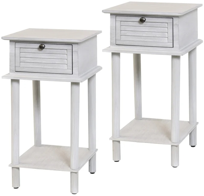 Wood shutter side tables with one drawer