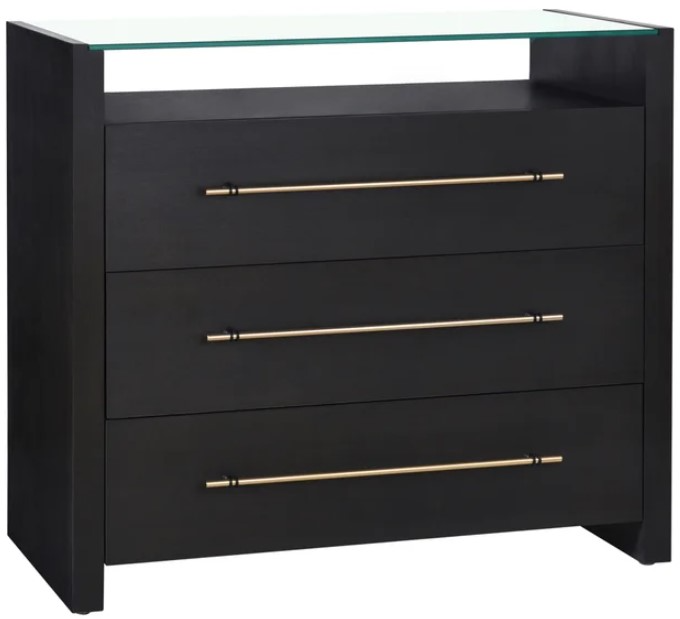 The Stylecraft Dann Foley Lifestyle Black Drawer with Gold Glass Top features sleek black drawers, durable construction, and an elegant gold glass top that enhances any room. Functional storage meets modern sophistication for living rooms, bedrooms, or entryways effortlessly.Read More