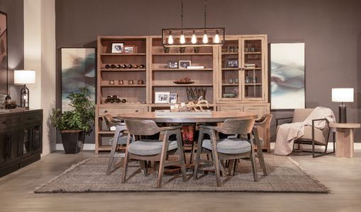 The Mia 72" Round Dining Table brings people together with timeless style and effortless comfort. A clean, modern base offers generous legroom, while the round silhouette encourages easy conversation. Crafted from wire-brushed mindi solids and veneers, the Mia showcases a beautifully textured surface that highlights its natural character and craftsmanship. Add the convenient lazy Susan for effortless serving. This table comfortably seats 6-8, making it a warm and inviting centerpiece for any dining space.Read More
