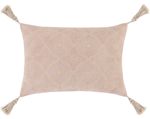 The Accra Peach 13" x 20" Toss Pillow from Surya features a down insert, tassel design, and is made in India.