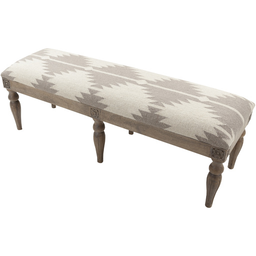 This gray/taupe geometric bench is the perfect accessory piece in the home. A stylish yet functional piece that sits on top of a wood base and is upholstered in 100 percent wool.Read More