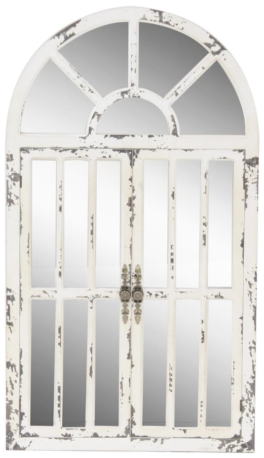 Infuse your home with romantic nostalgia and timeless grace, where ornate and antique details create a sanctuary of charm and warmth in the home. The white room wall mirror is made of glass materials and Chinese fir wood for a sturdy construction. This arched hanging wall mirror has a distressed white wooden frame.Read More