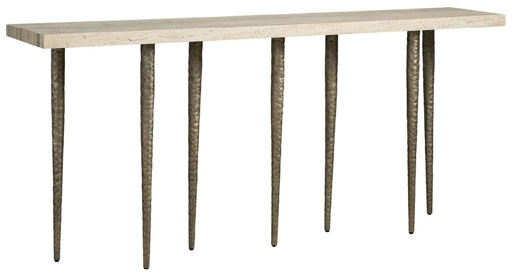 The Lowry Console is a striking piece of modern design that celebrates the interplay of positive and negative space. Its slender, nickel-finished metal legs create an airy, almost ethereal quality, while the solid white travertine top provides a grounding element.Read More