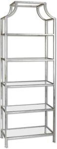 Silver leafed iron with clear, tempered glass shelves.Read More