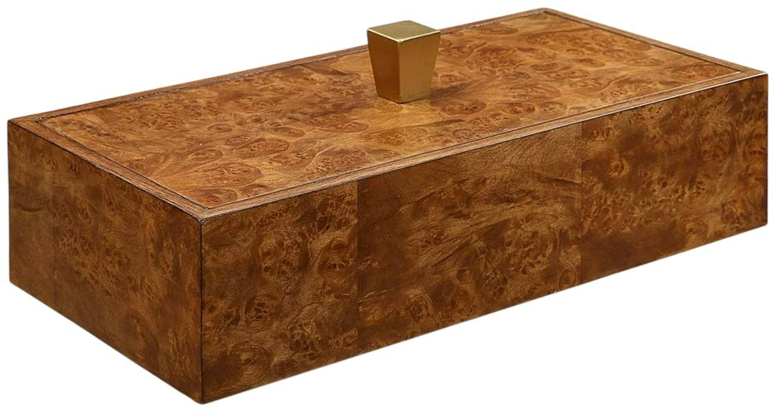 This beautifully crafted box features a stunning burl veneer finish that showcases the unique grain patterns of the wood, adding a touch of natural elegance to any decor. The antique brass handle on the lift-off lid enhances its vintage charm, making it not only a stylish storage solution but also a decorative accent.Read More