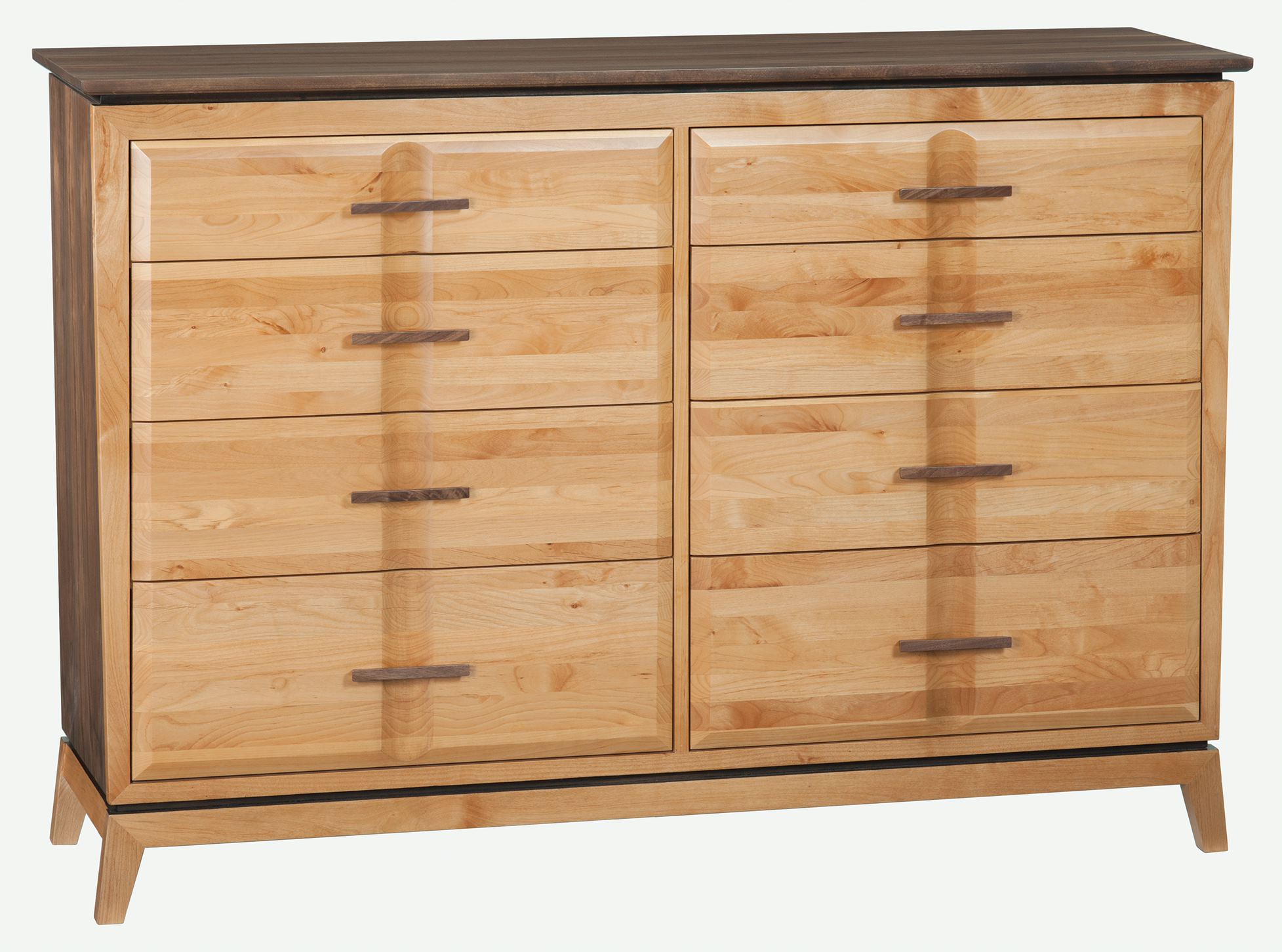This dresser features solid alder hardwood with a Duet finish and English dovetail drawer construction.