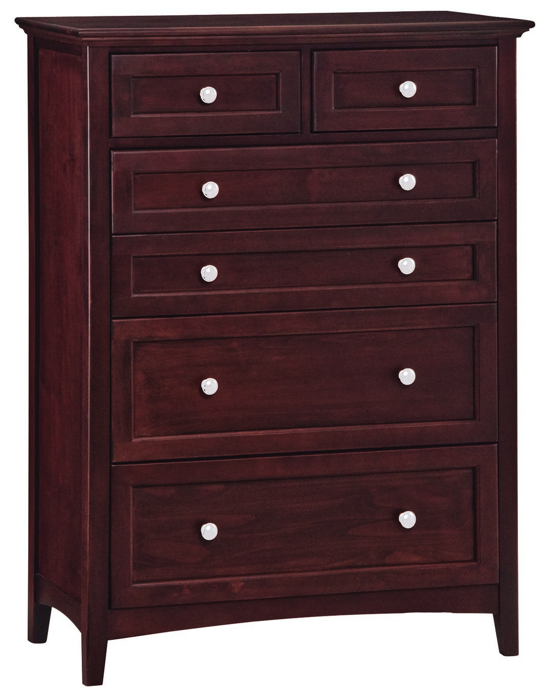 This chest features solid alder hardwood with a Caffe finish and English dovetail drawer construction.