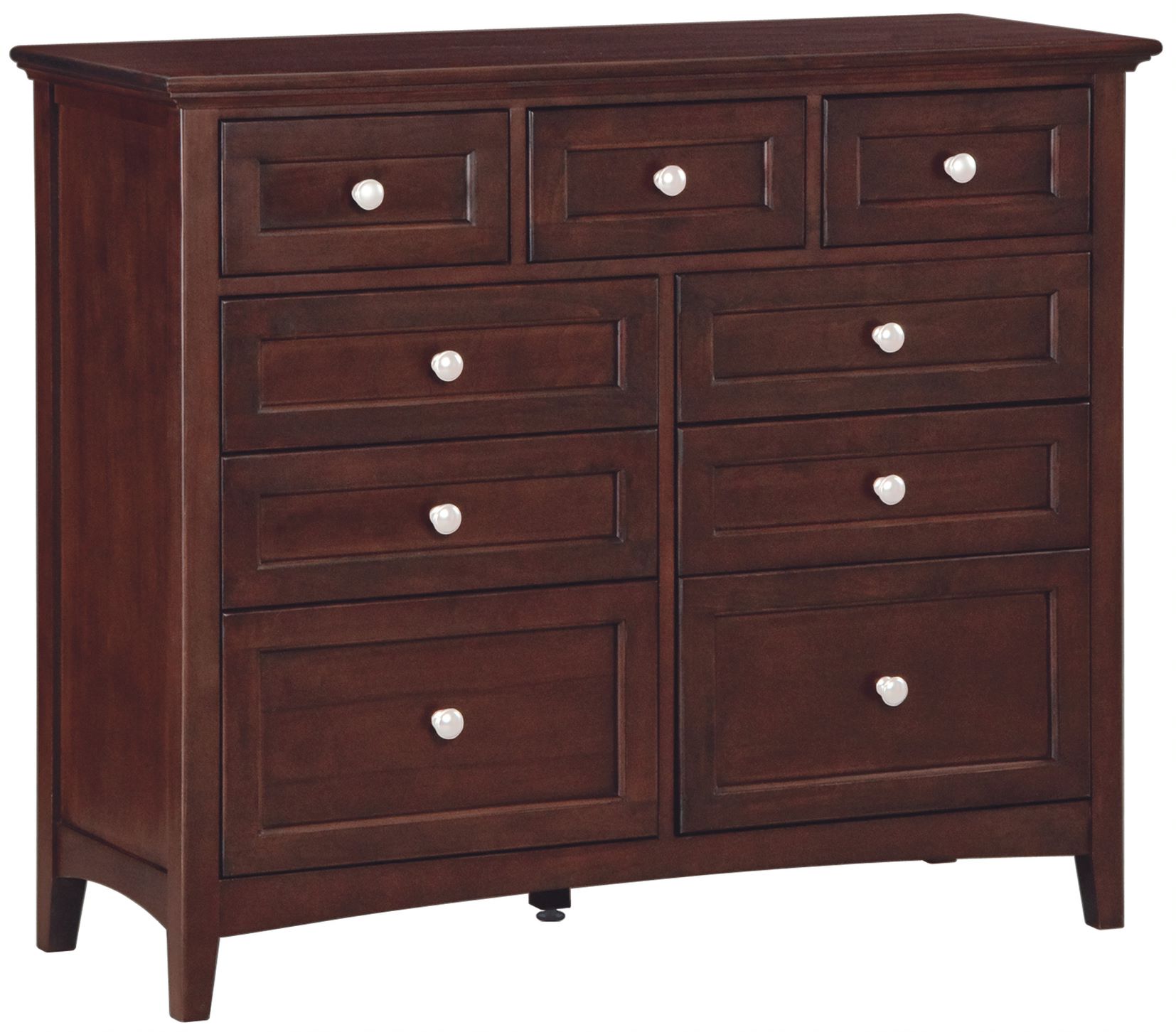 This dresser features solid alder hardwood with a Caffe finish and English dovetail drawer construction.