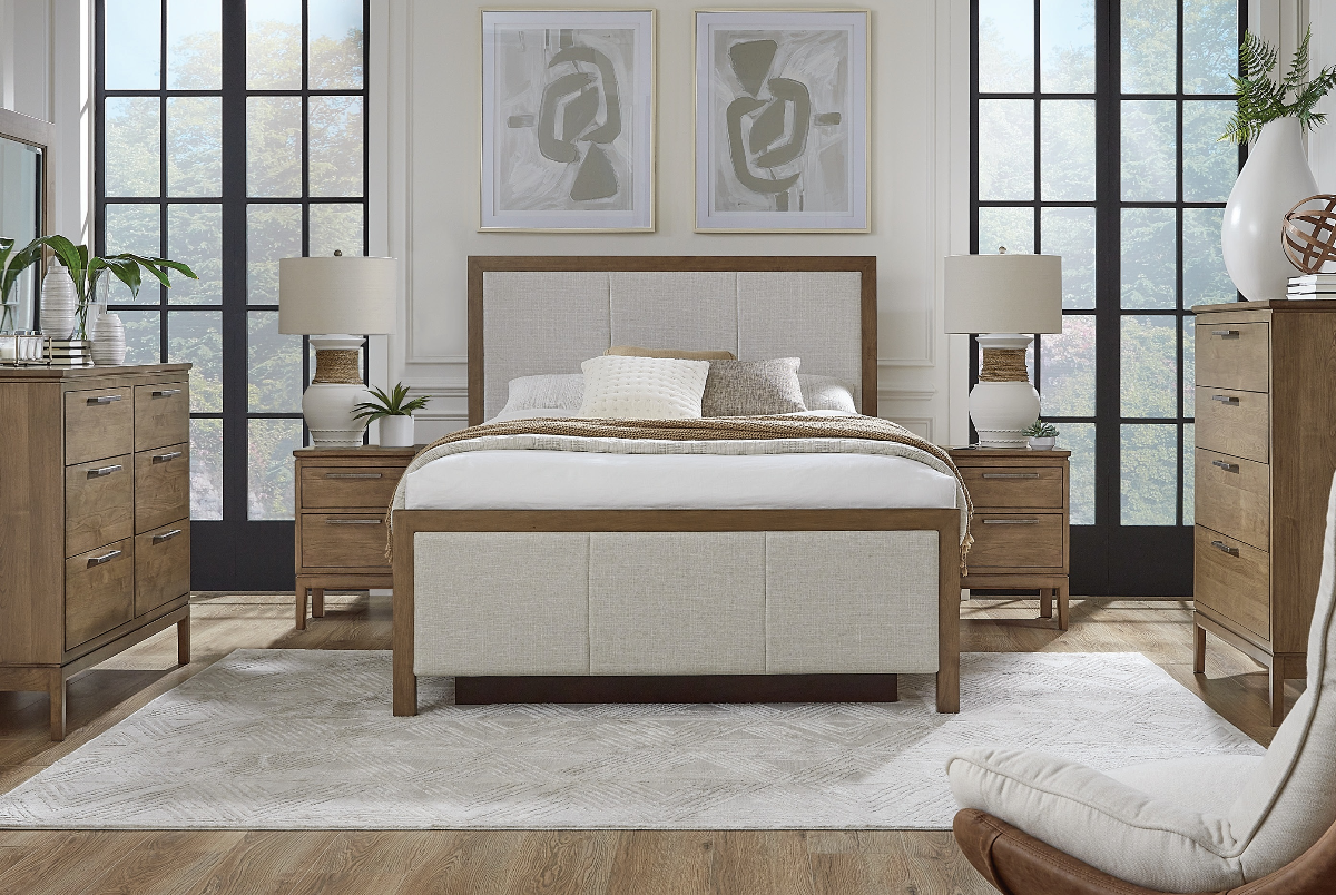 With its classic, timeless design and high-quality construction, this queen upholstered panel bed is the perfect choice for anyone seeking a comfortable and stylish sleeping solution. This bed features a transitional design that blends effortlessly with any home decor. The sturdy frame is made from American Alder hardwoods, ensuring strength and stability, while the mortise and tenon joinery construction provides added durability.Read More